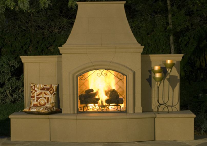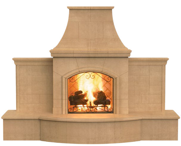 This full-sized classic outdoor fireplace combines timeless design with modern functionality, providing both warmth and ambiance for any outdoor gathering. The Grand Series Fireplaces incorporate wall extension panels to expand upon the body of the fireplace to create many new decorating opportunities while also providing a beautiful separation to the world behind the fireplace.