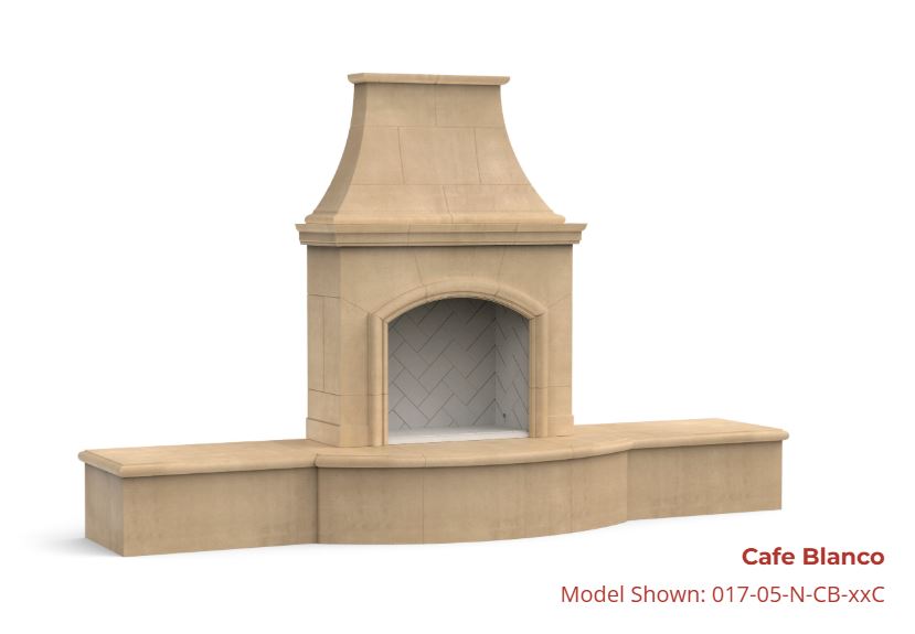 This classic outdoor fireplace combines timeless design with modern functionality, providing both warmth and ambiance for any outdoor gathering. A hearth-style option is also available for added customization.