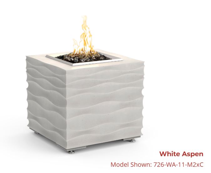 Handcrafted from durable glass fiber reinforced concrete (GFRC), this contemporary outdoor fire table offers a warm and welcoming space for gathering with friends and family. Its smooth, wavy lines bring a touch of modern sophistication to any outdoor setting. Personalize it with your favorite Fyre Glass and accessories to match your style. Designed for convenience, it accommodates a 5-gallon LP tank inside the unit (not included).